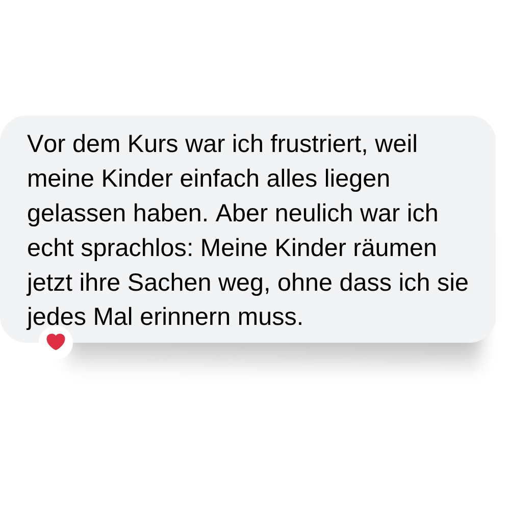 Ich gehöre zur skeptischen Sorte und wusste nicht, ob so ein Onlinekurs mir noch helfen kann. Aber er hat unsere Familie wirklich verändert. Ich mag besonders, wie strukturiert Diana vorgeht aber ohne mir dabei etwas aufzudrücken!