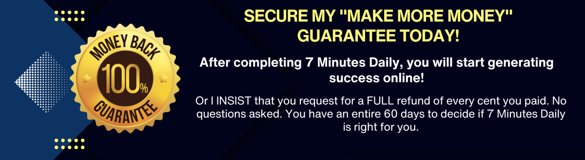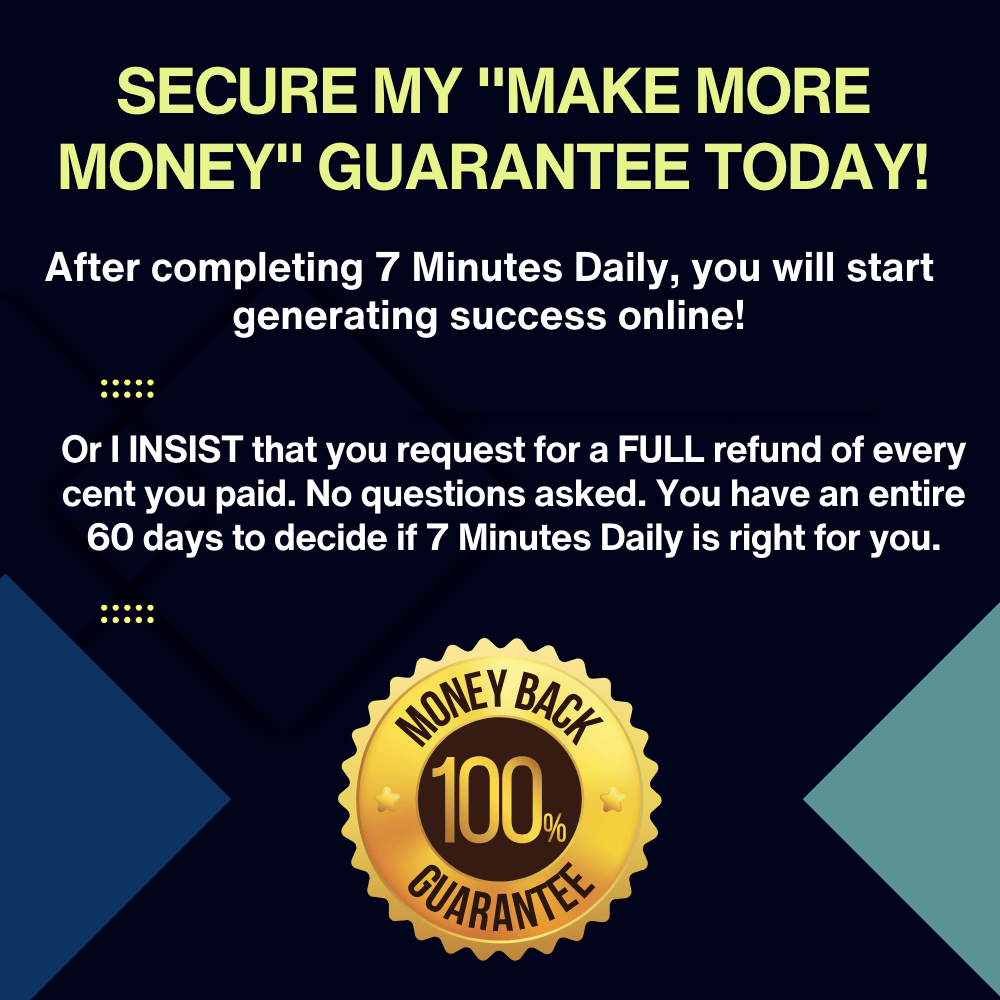 Because I want to ensure your success, I'm giving you the next 60 days to try out 7 Minutes Daily System.