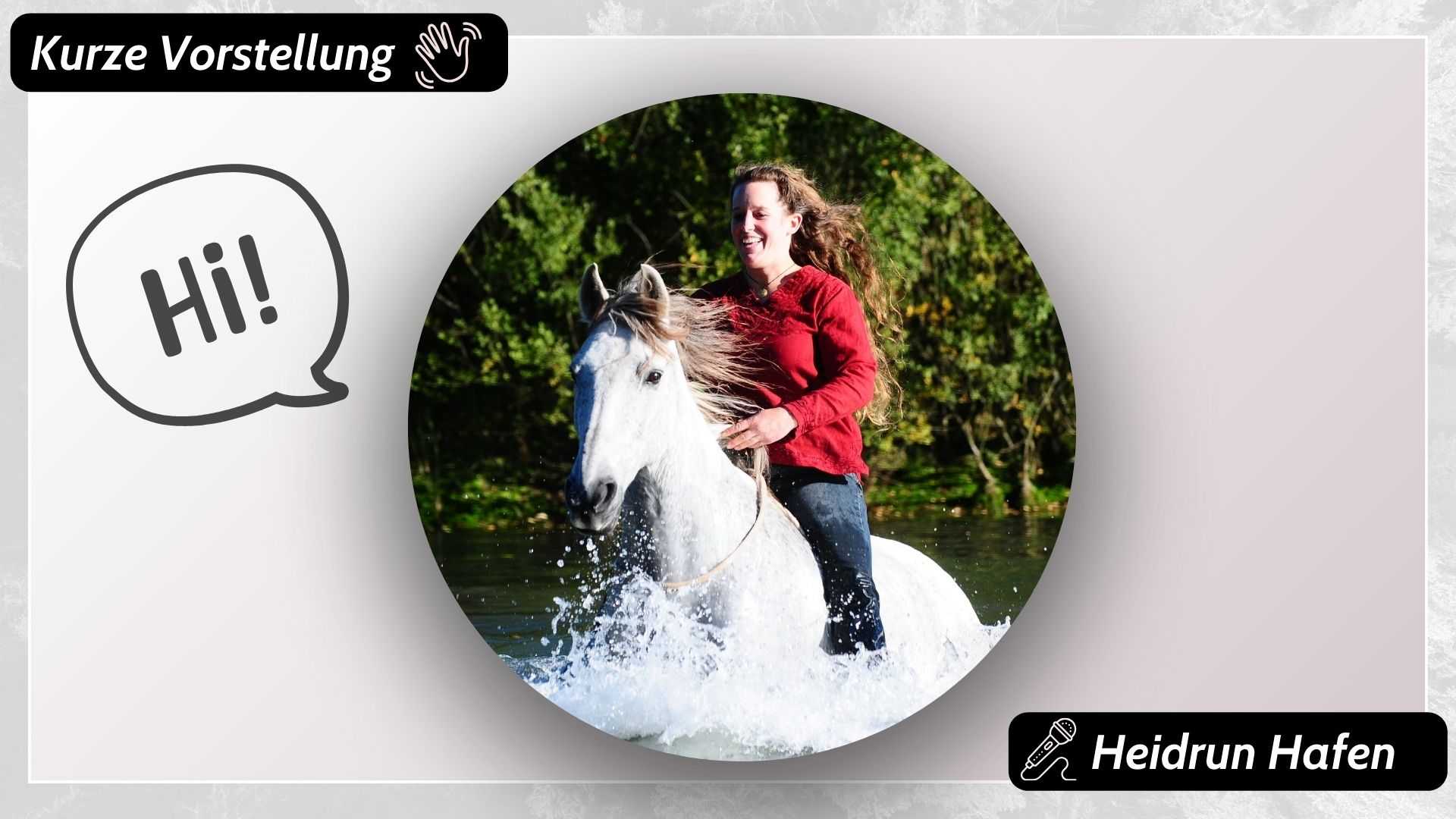 Heidrun Hafen ist eine begnadete Pferdetrainerin, Buchautorin und Absolventin der Schule für Tanz, Theater und Clownerie. Mit ihrer langjährigen Erfahrung in der Ausbildung von Pferden und ihrer Mitwirkung an Shows, Pferdemusicals und Galaabenden verbindet sie künstlerischen Ausdruck mit fundierter Pferdearbeit.