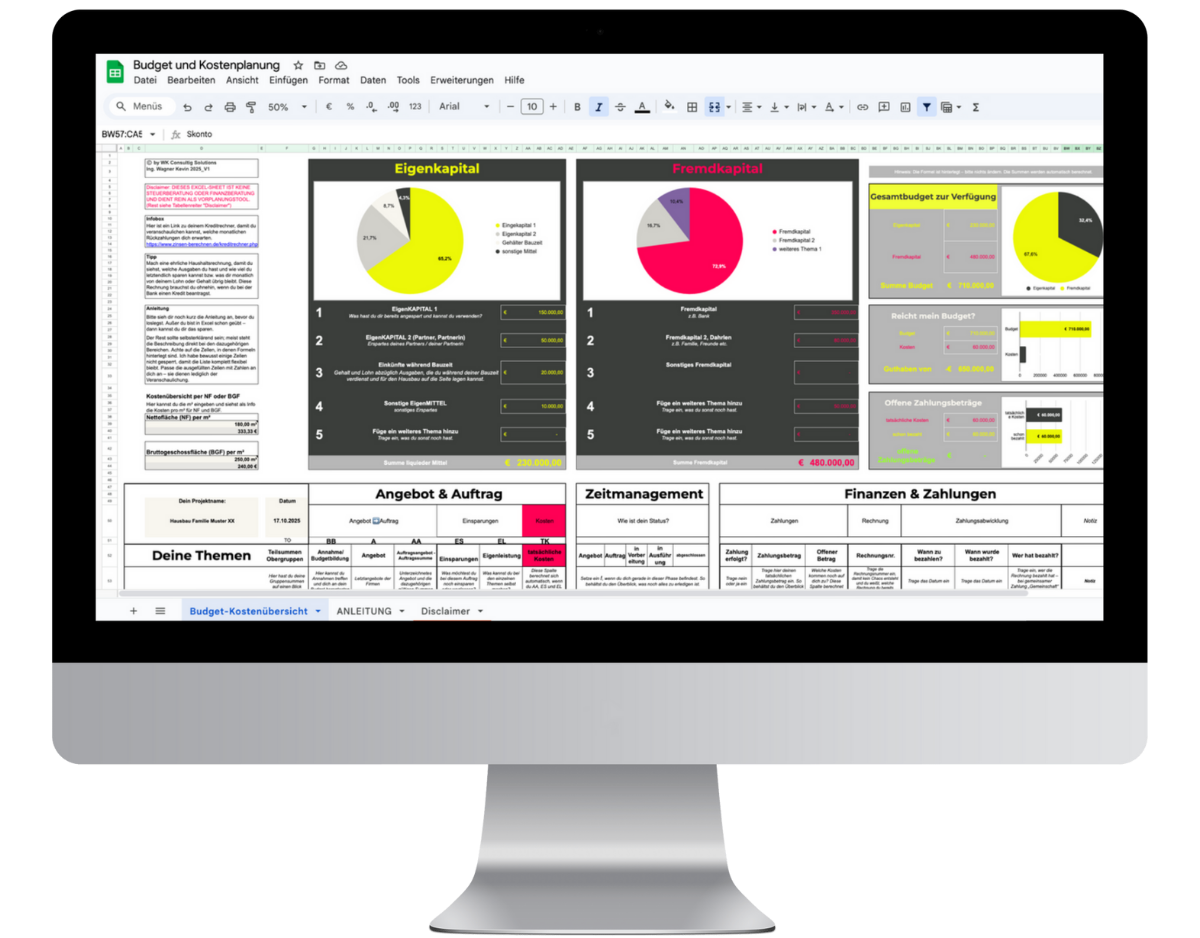 🚧 Der Budget und Kostenplaner gibt dir genau hier Klarheit. Du siehst jede Ausgabe, erkennst Einsparpotenziale und weißt jederzeit, wo du finanziell stehst. Ohne Chaos, ohne Rätselraten, ohne stundenlange Eigenkonstruktionen.