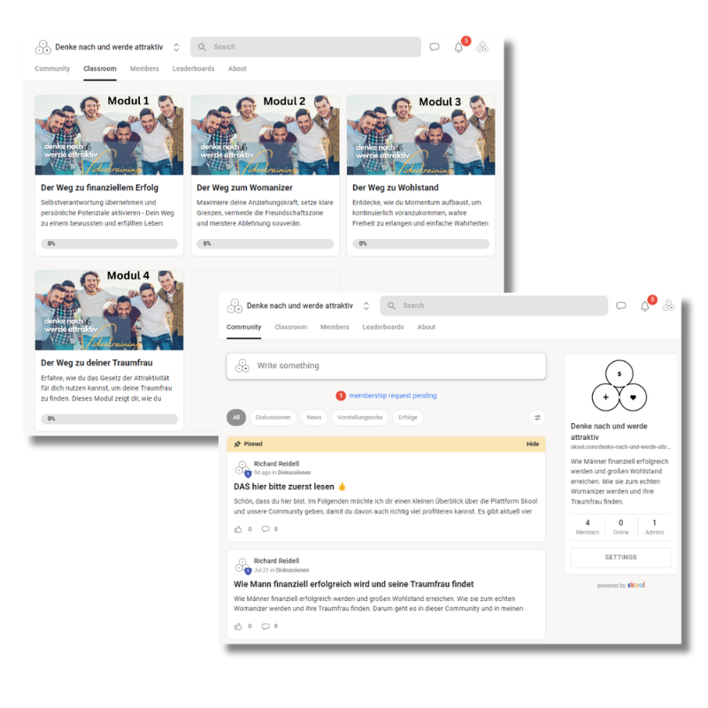 ✅ Ein Netzwerk voller Gleichgesinnter, die alle das Ziel haben, finanziell erfolgreich zu werden, ihren Lebensstil zu optimieren und ein Womanizer zu werden