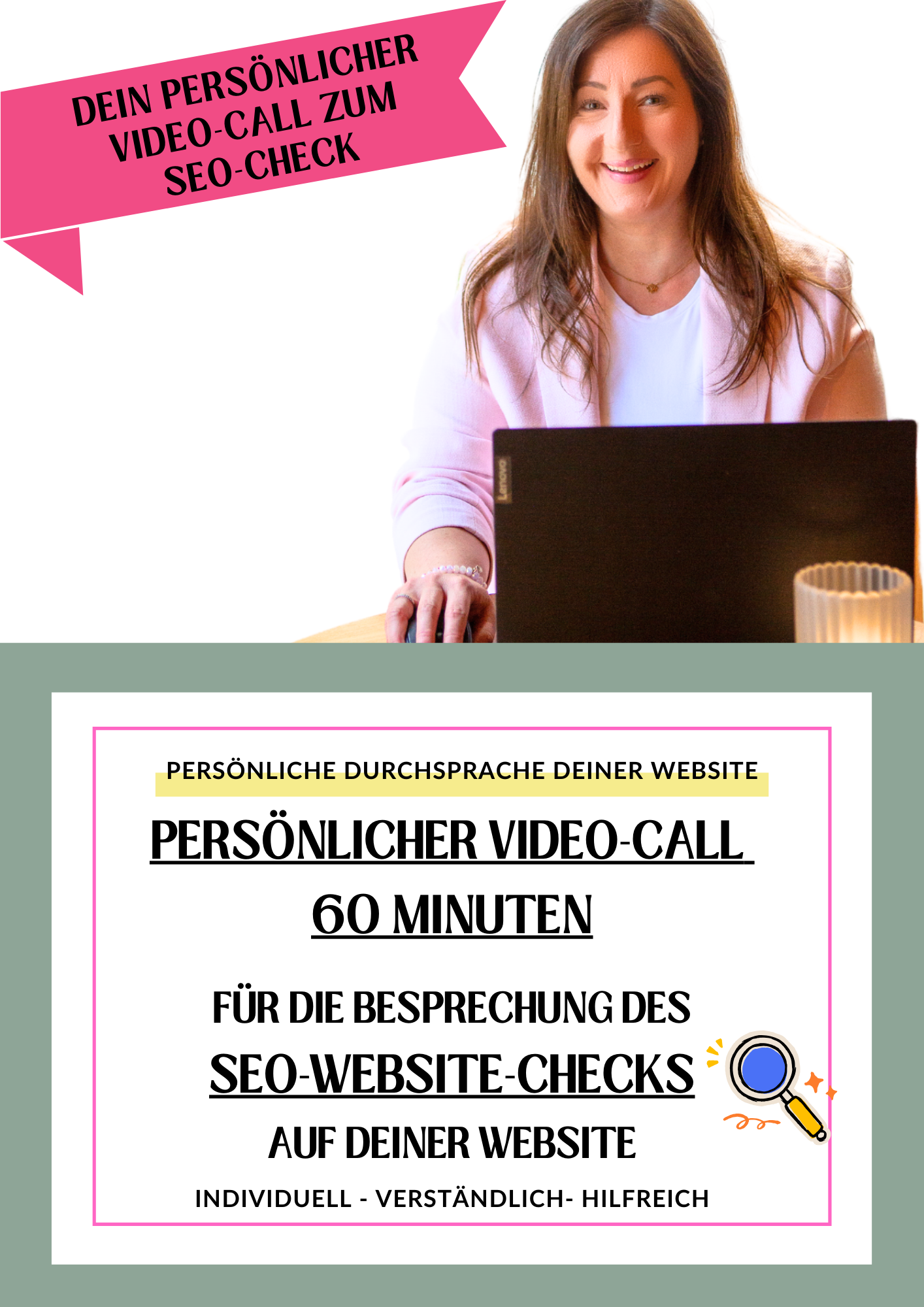 - Individueller SEO-Check direkt auf deiner Website (max. 5 Seiten): Ich prüfe deine Website umfassend auf SEO-Relevanz.
