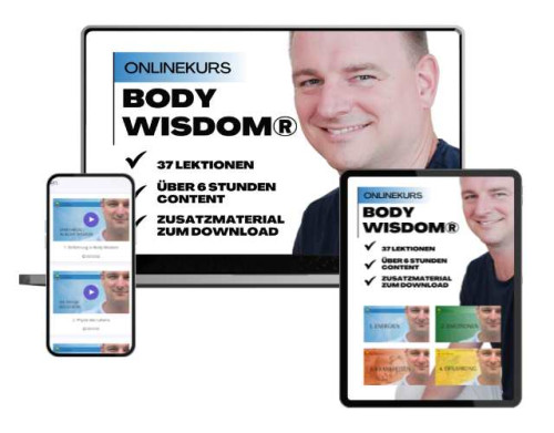 Zum Glück bedeutet dies auch: Der Körper ist nicht nur ein Seelenspiegel, sondern zugleich auch die unmittelbare Lösung für deinen Gesamtzustand. Und das heißt: Der Weg zu einem erfüllten und gesunden Leben beginnt mit dem Verständnis für deinen Körper – oder genaugenommen mit dem von mir entwickelten Konzept Body Wisdom®.