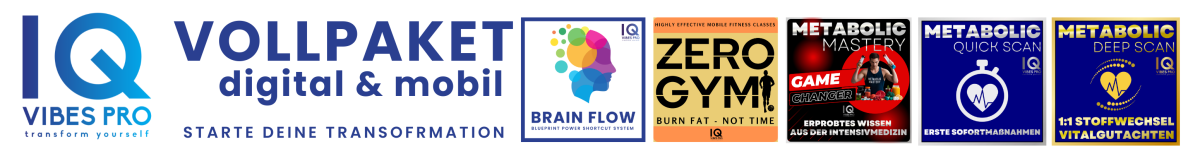 Nur schnelle Entscheidungen und Entschlossenheit wirklich etwas zu verändern werden deinen Erfolg bringen! Daher erhöht sich der Preis um genau Euro 1000,- auf den Normalpreis des kompletten Coachingprogrammes, sobald der Counter auf Null steht. Nutze deine Chance jetzt und starte deine Transformation mit iQVibesPro! Die buchst die Tools und Kurse für genau ein Jahr. Wenn du dann dabei bleiben willst, zahlst du für alles zusammen monatlich 47,- Euro ab dem 13ten Monat bei monatlicher Kündigung - völlig risikofrei und ohne Angaben von Gründen. Wir entwickeln das System und die Trainings ständig weiter und wenn du dran bleibst, wird dieses Trainingsprogramm dein Leben und deine Performance nachhaltig verändern!