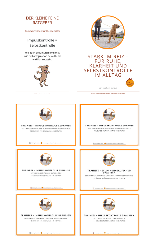 Dieses Set vereint alle Inhalte zu Impulskontrolle und Frustrationstoleranz beim Hund – für Menschen, die emotionale Entwicklung, Beziehung und Alltag sinnvoll verbinden wollen.