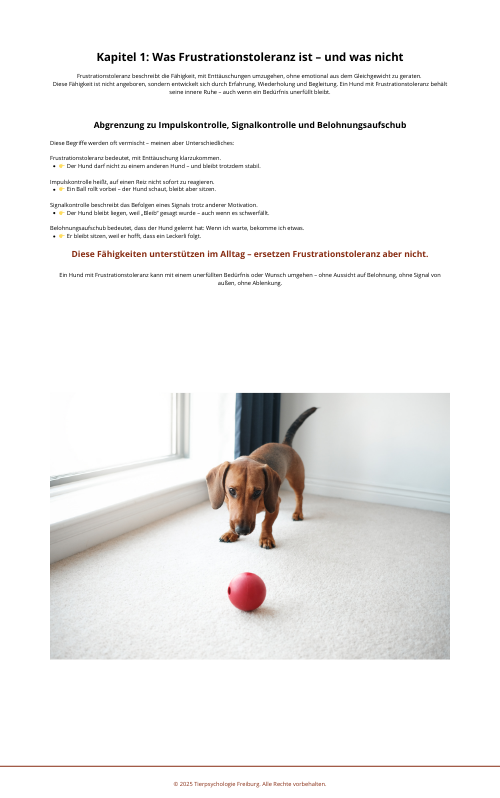 Du erfährst, wie Frust im Gehirn verarbeitet wird, warum emotionale Reifung nicht trainiert werden kann – und was du im Alltag konkret tun kannst, um deinen Hund zu stärken.