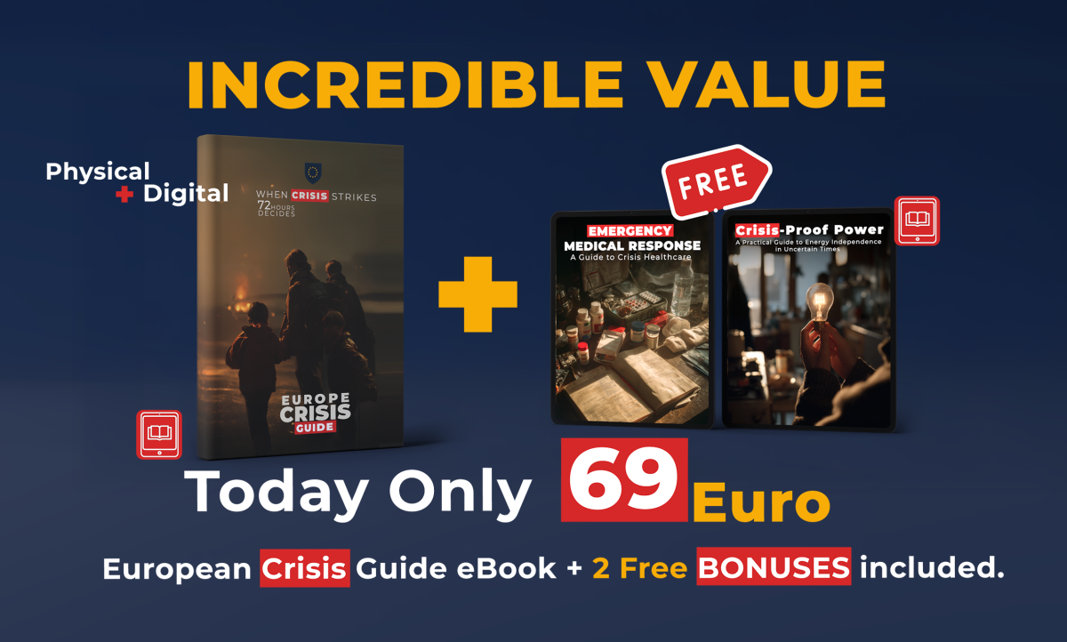 IMPORTANT: Get this detailed inventory checklists for water, food, medicine, tools, and documentation with specific European considerations and quantities for optimal 72-hour survival. It will help you to not miss anything from this guide during the implementation phase.