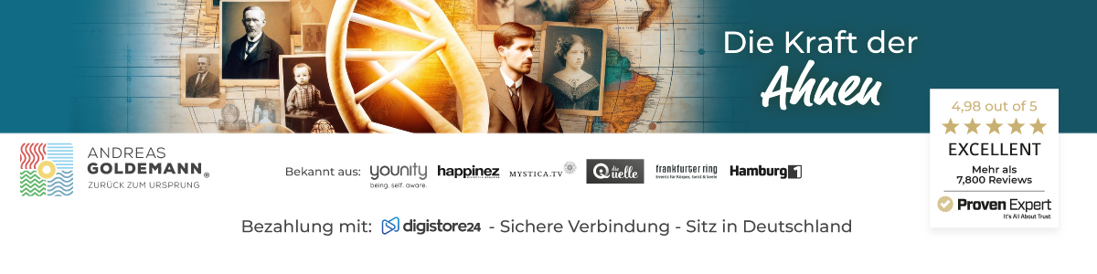 Mit dem systemisch-energetischen Onlinekurs „Die Kraft der Ahnen 3.0", der im Jahr 2025 von Andreas Goldemann komplett neu und aus einem Guss erstellt wurde, erhältst Du ein wirkungsvolles spirituell-energetisches Werkzeug zur Befreiung von familiären Belastungen, zur Heilung Deiner Beziehungsfelder und zur Verbindung mit der Kraft Deiner Ahnenlinie.