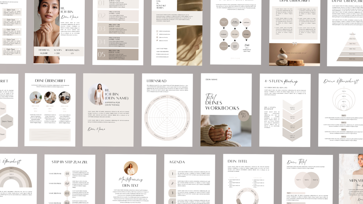 Wenn du dir selbst 20-30 Stunden Arbeit ersparen willst, empfehle ich dir sehr dieses Upgrade zu deiner Bestellung. Mit diesen Vorlagen kannst Du Deine Workbooks, E-Books oder Freebies in Minuten professionell erstellen. Die Vorlagen sind nicht nur schön gestaltet, sondern inhaltlich durchdacht aufgebaut – sie führen dich Schritt für Schritt durch eine klare, professionelle Struktur - inkl. Willkommens-, Über mich-, Visions-, Agenda & Inhaltsseiten. Sichere dir jetzt diese wertvollen Vorlagen für nur 17€ und begeistere deine Kund:innen!
